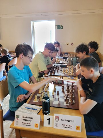 In der u14 haben die Schachzwerge Magdeburg in der sechsten Runde knapp gegen den Tabellenführer aus Hamburg verloren und sind damit aus den Qualifikationsplätzen gerutscht. Mit einem Sieg morgen ist die Chance zur Qualifikation aber durchaus noch da. Nach den Derbys in der u12 gab es heute nun das u14 Derby zwischen dem USC Magdeburg und dem SK Dessau 93, welches friedlich 2-2 endete. Mit dem gleichen Ergebnis konnten beide Teams auch in der ersten Runde Zählbares einfahren.